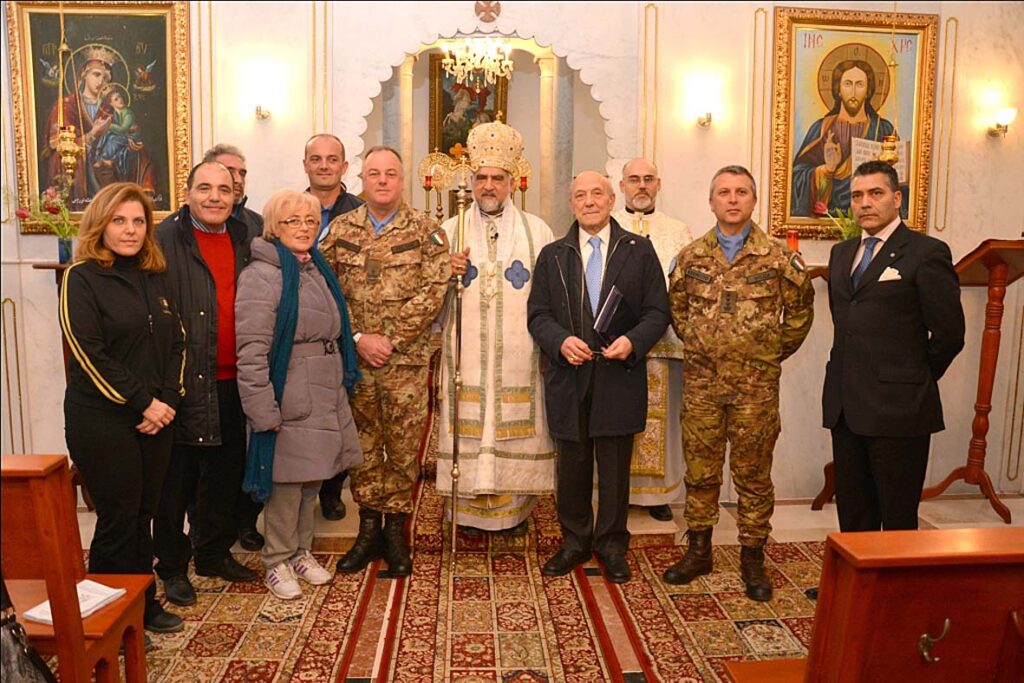 Il programma è stato illustrato nelle sue linee di massima, ed è stata organizzata, per il primo pomeriggio, la partenza verso Tibnin – accompagnati dal Generale – per prendere parte alla Santa Messa officiata in occasione della visita della nostra Delegazione presso la chiesa di San Giorgio, a circa 70 chilometri da Shama, celebrata da Sua Eccellenza Monsignor Mikhael Abrass, Arcivescovo Metropolita greco cattolico di Tiro, cui il Delegato Sanfelice ha fatto dono – come ricordo – del crest di Casa Borbone; ha concelebrato il parroco della chiesa di San Giorgio Don Said Antojios nelle lingue italiana e libanese. Nel tardo pomeriggio una degustazione di prodotti locali ha siglato la gratitudine di quel popolo per l’iniziativa benefica della Delegazione di Napoli e Campania del Sacro Militare Ordine Costantiniano di San Giorgio; nell’occasione il nostro Delegato Marchese Pierluigi Sanfelice ha ribadito la volontà di dare continuità ai rapporti della Delegazione con il Libano. Il serata, ritorno alla base di Shama e briefing con il Generale Dal Col.