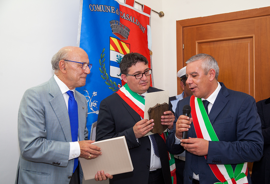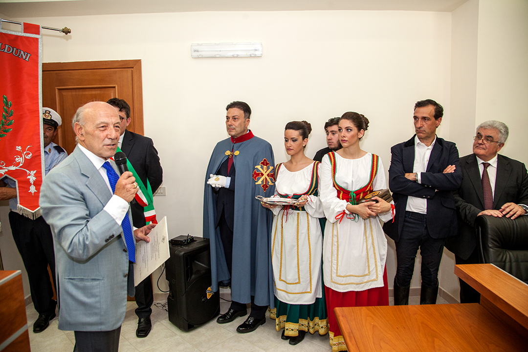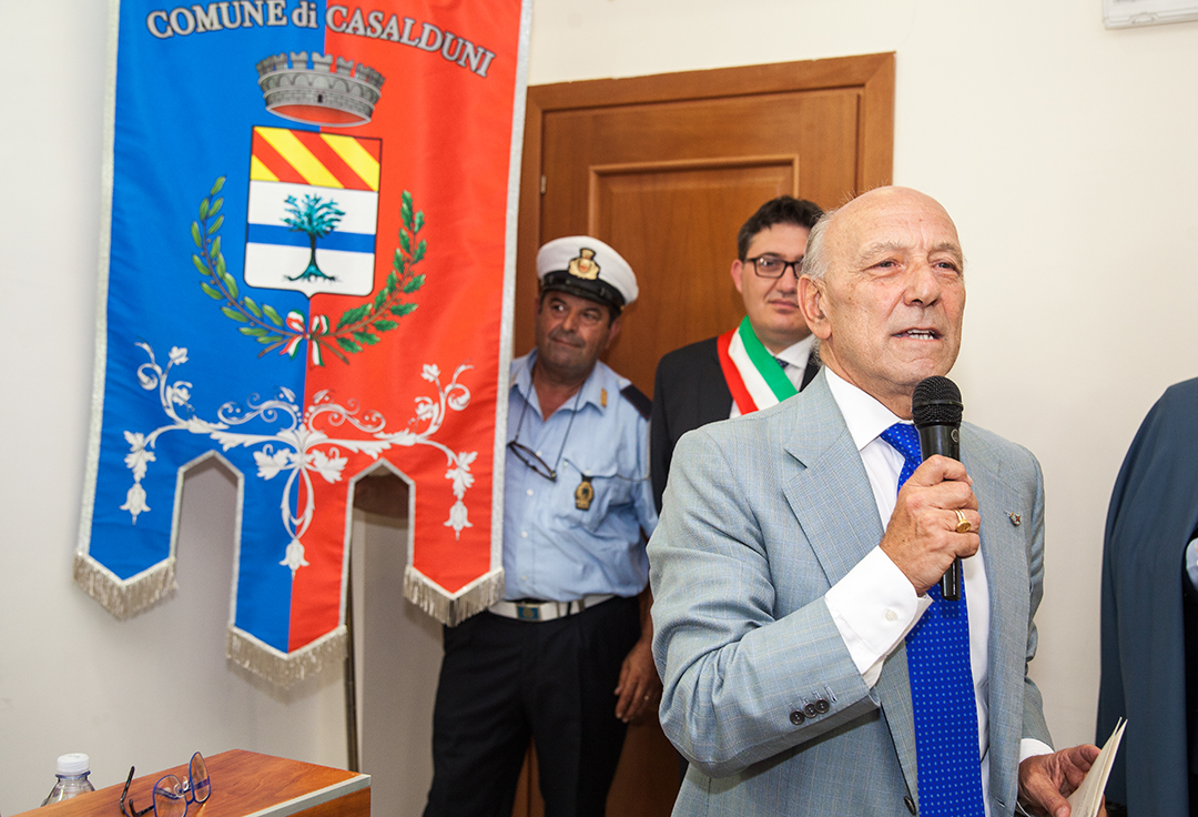 “Saluto il Sindaco di Casalduni Pasquale Iacovella, che ha voluto così opportunamente ospitare questa manifestazione storico culturale; e saluto inoltre il Sindaco di Pontelandolfo Gianfranco Rinaldi, le Autorità e gli organizzatori dell’evento “Sui sentieri del brigantaggio”, e in particolare il dottor Franco Parente, Presidente dell’Associazione “Cavalieri della Collina” e il nostro Cavaliere Massimo Contini che ci rappresenta su Benevento”, ha detto nei suoi saluti il marchese Sanfelice, che ha poi continuato: ”Il Corpo Internazionale di Soccorso dell’Ordine Costantiniano, che mi onoro di presiedere, svolge attività di aiuto per quanto possibile in appoggio ad organizzazioni che si occupano di solidarietà, e ciò per rimarcare sotto il profilo storico che il nostro Ordine ricorda con grande interesse quelli che furono gli accadimenti politici che portarono ad una repressione ingiustificata su popolazioni inermi e dedite al lavoro dei campi. Oggi sono qui per consegnare al Comune di Casalduni e a quello di Pontelandolfo la medaglia d’oro di benemerenza del nostro Sacro Ordine. È la prima volta che due Comuni del Beneventano ricevono tale decorazione per i loro Gonfaloni. Lo abbiamo voluto fare per quanto precedentemente detto e per aprire una via moderna di collaborazione e di solidarietà”.