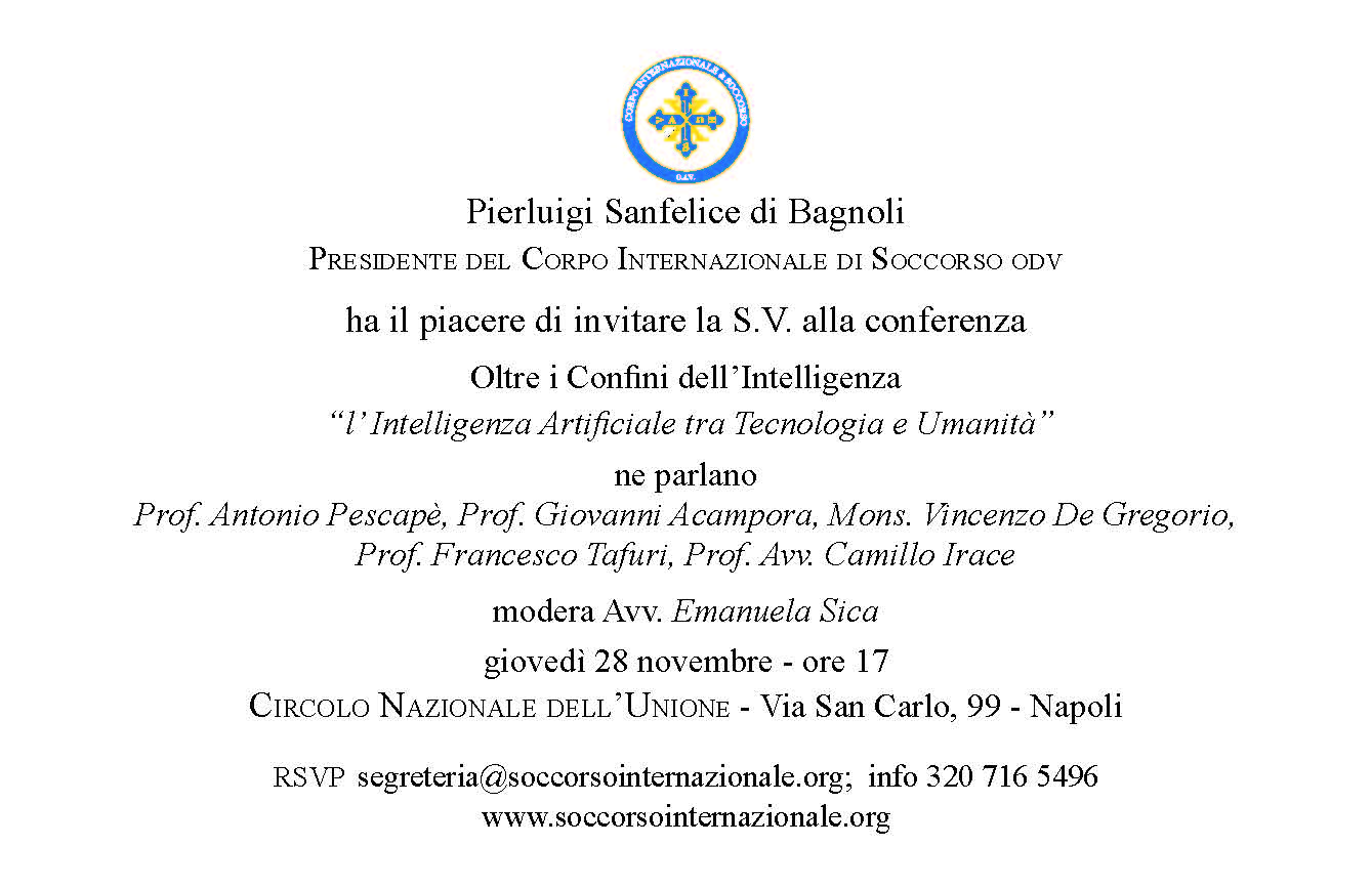 L’Intelligenza Artificiale (IA) rappresenta oggi una delle sfide più affascinanti e complesse del nostro tempo. La sua capacità di analizzare dati, apprendere e persino prendere decisioni sta già trasformando molteplici settori, dalla medicina alla giurisprudenza, dall’economia alla creatività artistica. Ma quali sono i limiti e le opportunità che questa tecnologia porta con sé? E soprattutto, come possiamo conciliare i progressi tecnologici con i valori umani e le responsabilità etiche? Questi interrogativi sono stati al centro della conferenza “Oltre i Confini dell’Intelligenza. L’Intelligenza Artificiale tra Tecnologia e Umanità”, promossa e organizzata dalla nostra associazione e che si è tenuta giovedì 28 novembre alle ore 17 presso il Circolo Nazionale dell’Unione.