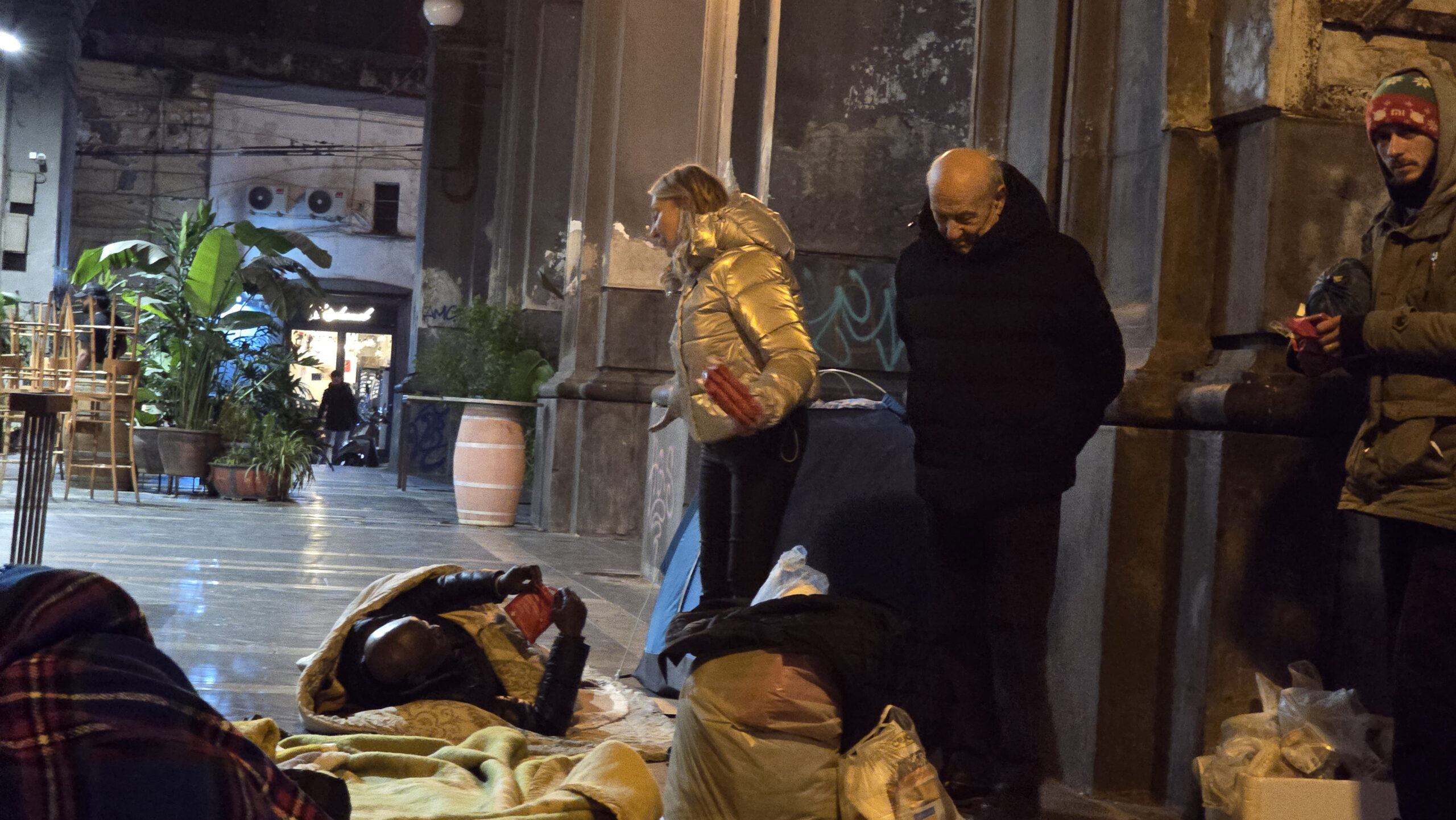 Le aree della Galleria Principe Umberto I e della Galleria Principe di Napoli sono diventate luoghi di incontro e di condivisione. Lì, dove il freddo si fa più duro e la solitudine più profonda, i volontari hanno incrociato sguardi, stretto mani, ascoltato storie. Storie di chi è arrivato da lontano, lasciando la propria terra con il sogno di una vita migliore, e di chi invece è nato a Napoli, ma ha perso tutto nel tempo, fino a ritrovarsi a dormire per strada, spesso senza nemmeno una coperta a proteggerlo dal gelo.