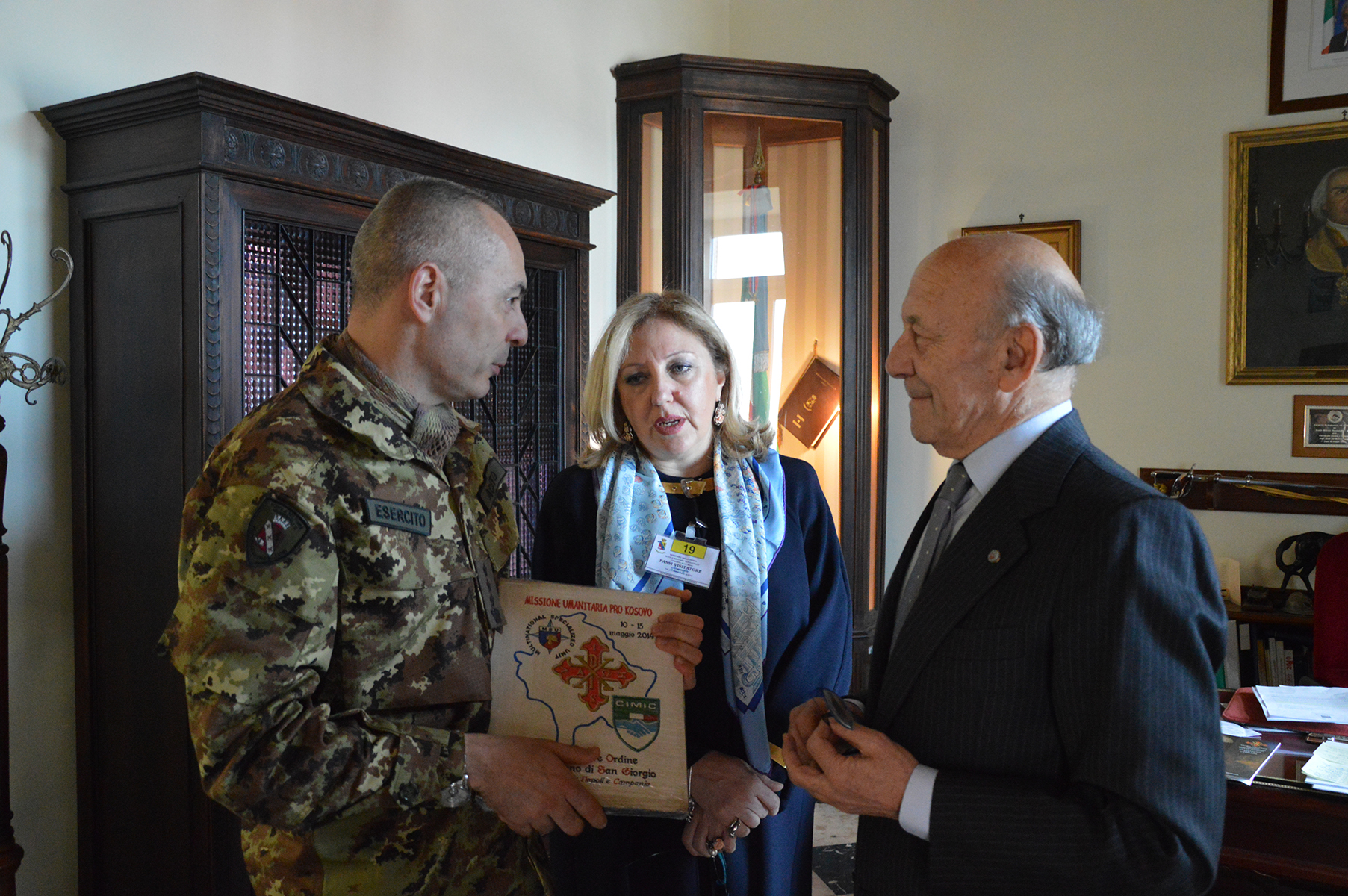 Il Presidente ha illustrato le attività che il C.I.S. ha svolto e svolge sul territorio nazionale e internazionale, soffermandosi sulla creazione dei centri di orientamento medico, e degli sportelli informativi e di orientamento dedicati ad alcune situazioni di grave disagio in cui versano talune componenti sociali: sono nati così lo Sportello Legale, quello Sacra Rota, quello dedicato alla tutela della famiglia con soggetti deboli, quello della consultazione psicologica; e poi l’area Odontoiatrica, quella della Difesa del Consumatore e quello degli Eventi, destinato ad ampliare la conoscenza delle proprie attività. Il Presidente Sanfelice ha lasciato poi al Comandante Fabio Aceto un Crest della Missione che il C.I.S. ha effettuato in Kossovo nel 2014, dove lo stesso Colonnello Aceto aveva operato a seguito della missione NATO nel 2010.