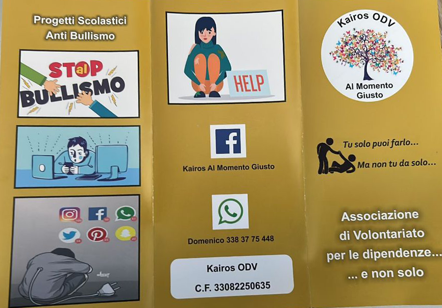La Kairos odv si occupa prevalentemente di prevenzione alle tossicodipendenze. In vari periodi dell’anno come in occasione del santo Natale, vengono effettuate raccolte di fondi per aiutare le famiglie meno abbienti frinite in difficoltà proprio a causa della droga.