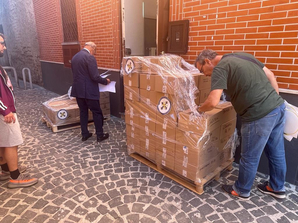 Il Presidente Marchese Pierluigi Sanfelice di Bagnoli, accompagnato da Ermanno Lauri, Susy Tosti e Antonio Laezza, e’ stato ricevuto da Suor Mariarca e da Tina Anacleria,e grazie all’aiuto di un cospicuo gruppo di giovani volontari che operano con il Monastero, hanno provveduto allo scarico dei donativi.