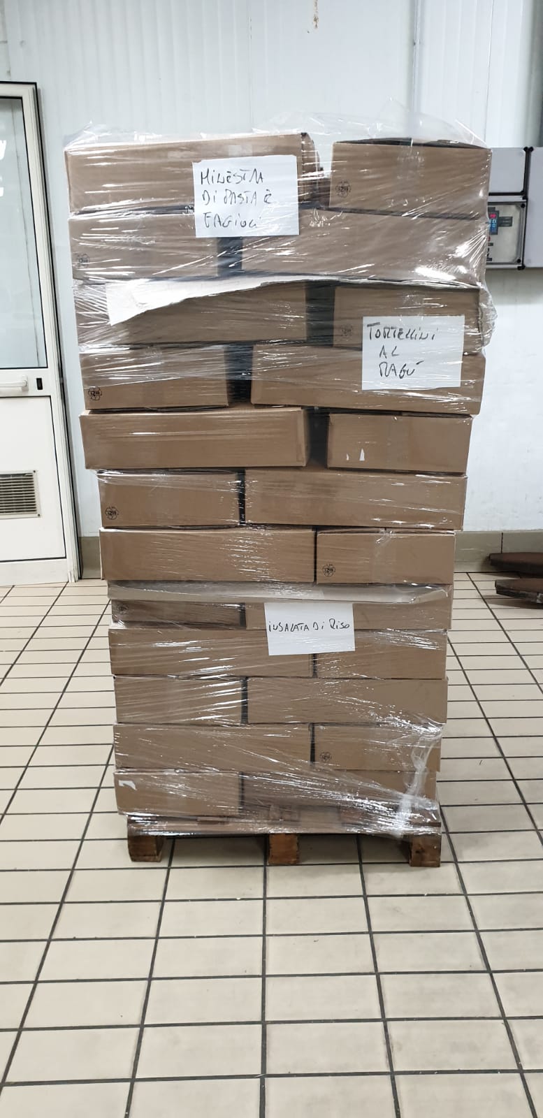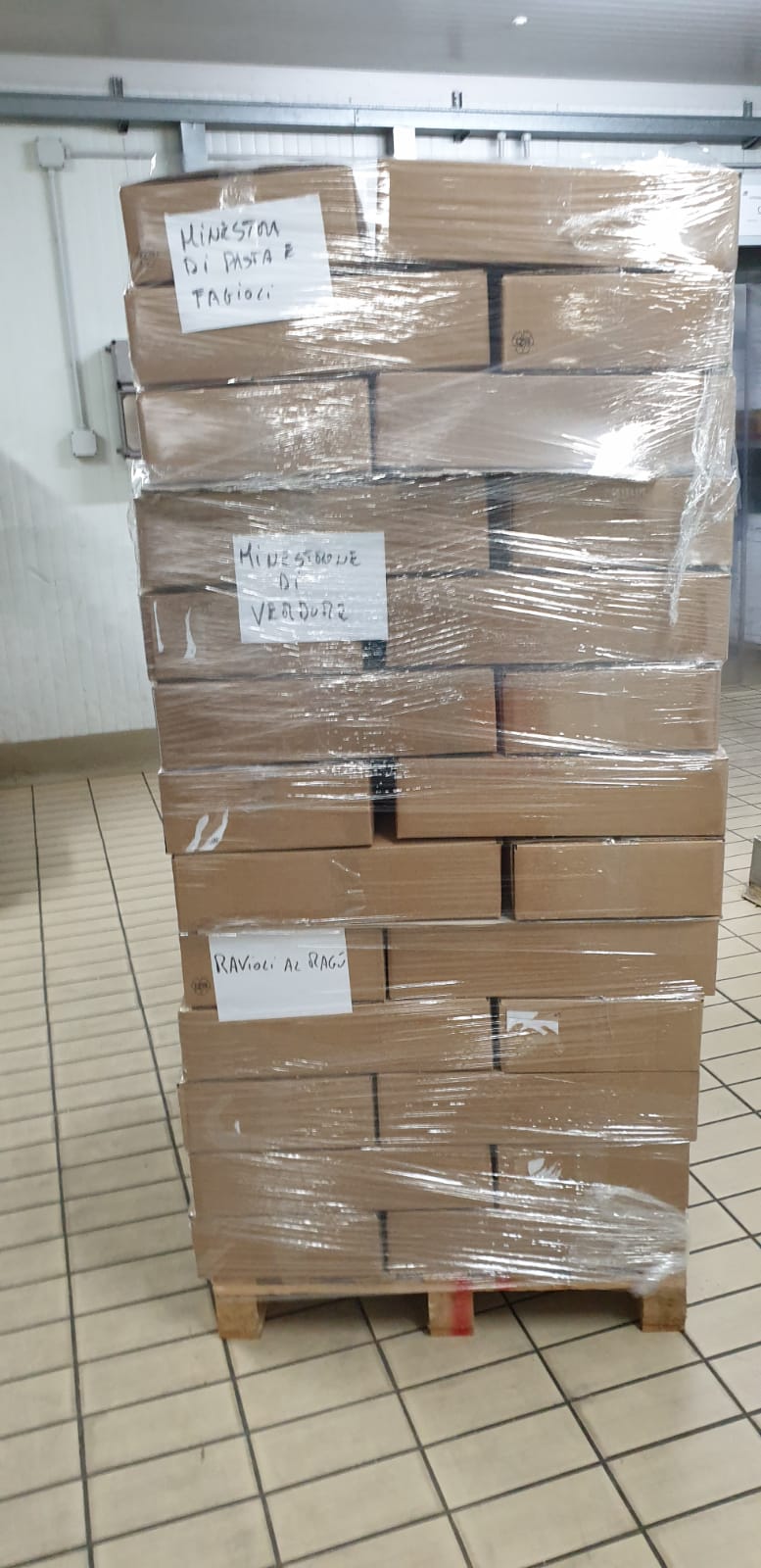 Ancora una volta il dottor Capasso ha voluto esserci vicino donandoci un gran quantitativo di alimenti perché fossero distribuiti ai nostri assistiti; si è trattato di due bancali reggenti ben 125 casse, per un totale di 3.000 scatole di alimenti (600 di insalata di riso, 600 di pasta e fagioli, 600 di minestrone di verdure, 600 di ravioli e 600 di tortellini al ragù).