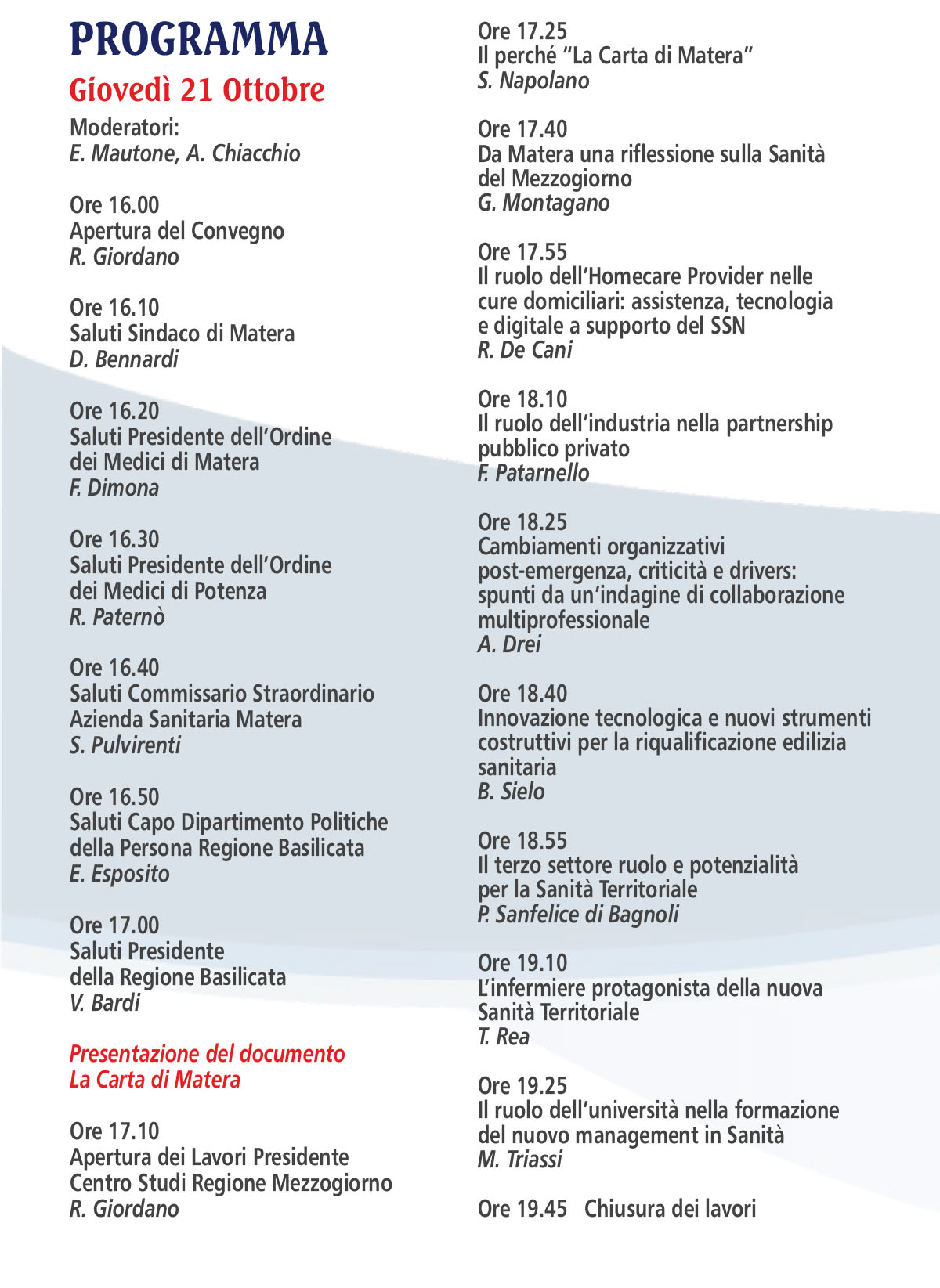 Ore 17.40 – Da Matera una riflessione sulla Sanità del Mezzogiorno – G. Montagano