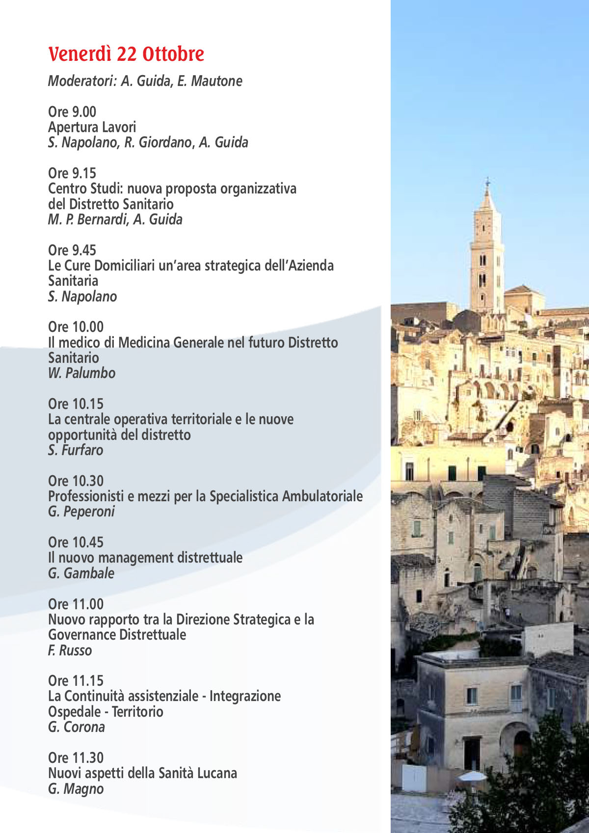 - Dott. Giuseppe Montagano – Direttore Ufficio Pianificazione Sanitaria Assessorato Sanità Regione Basilicata