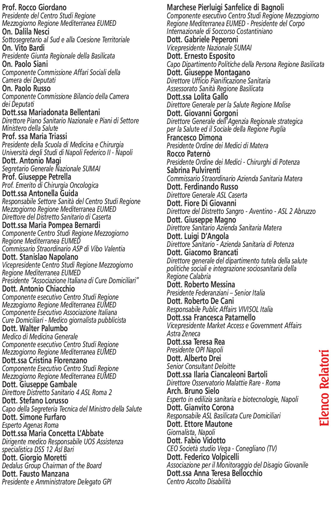 - Dott. Gianvito Corona – Responsabile ASL Basilicata Cure Domiciliari