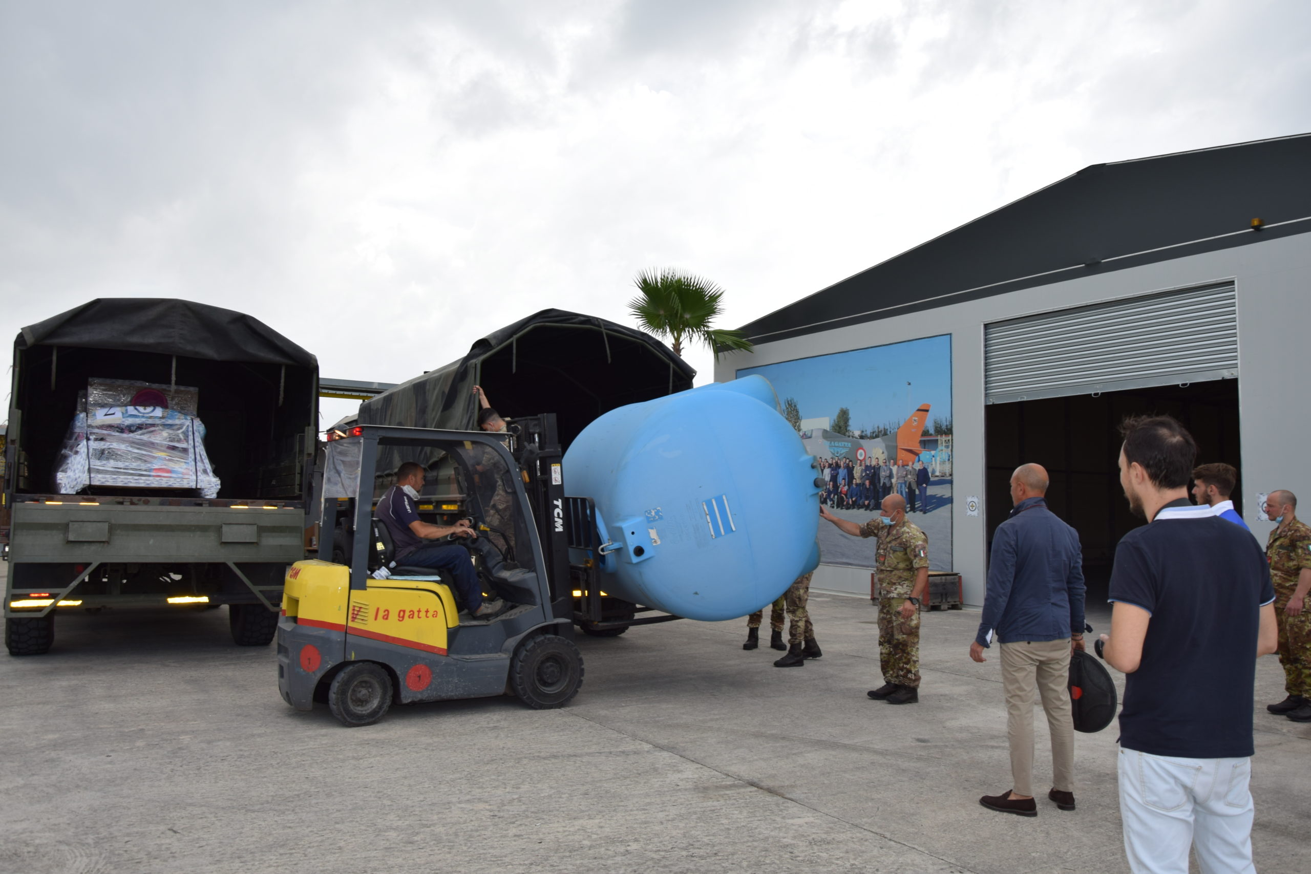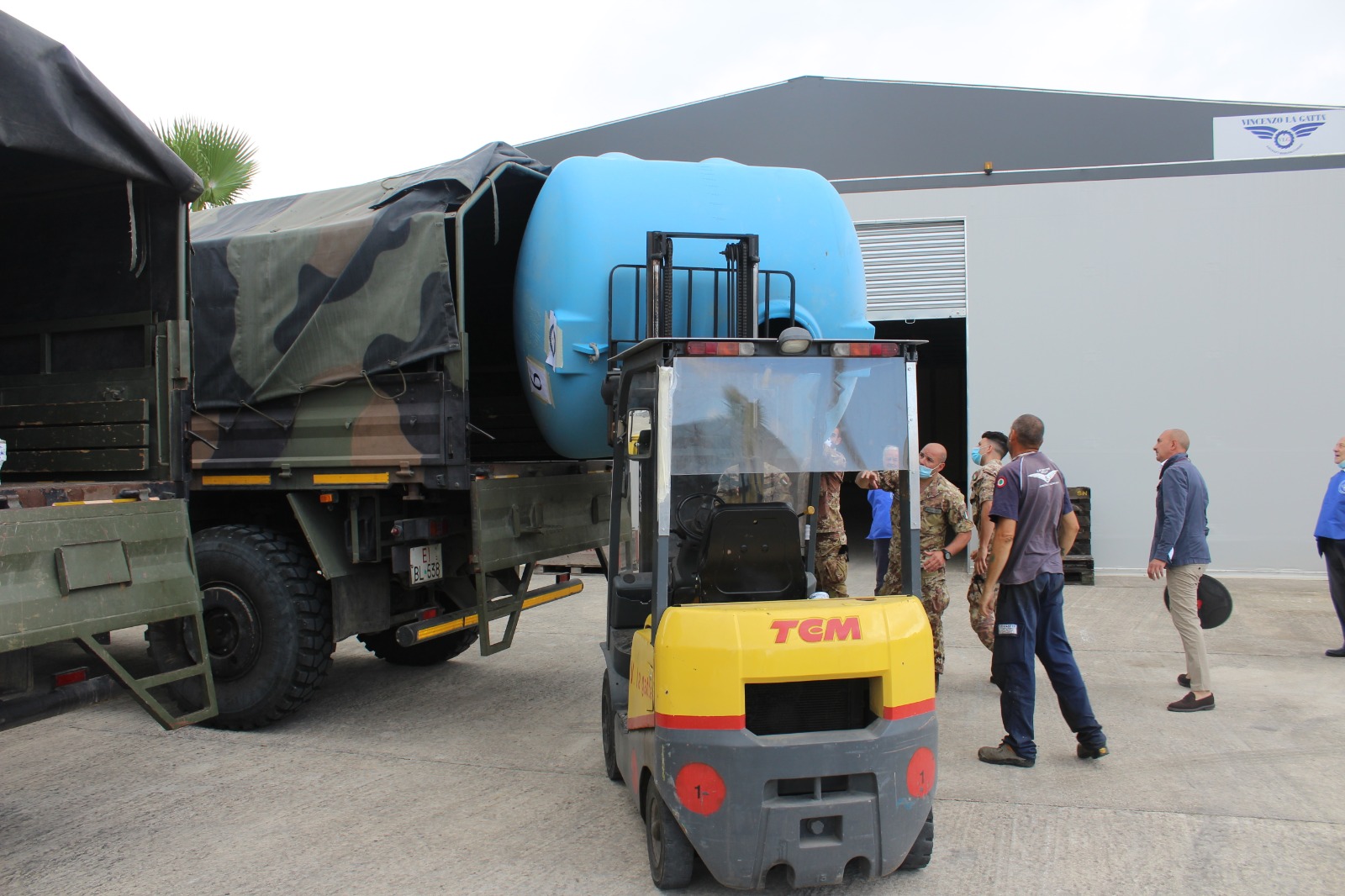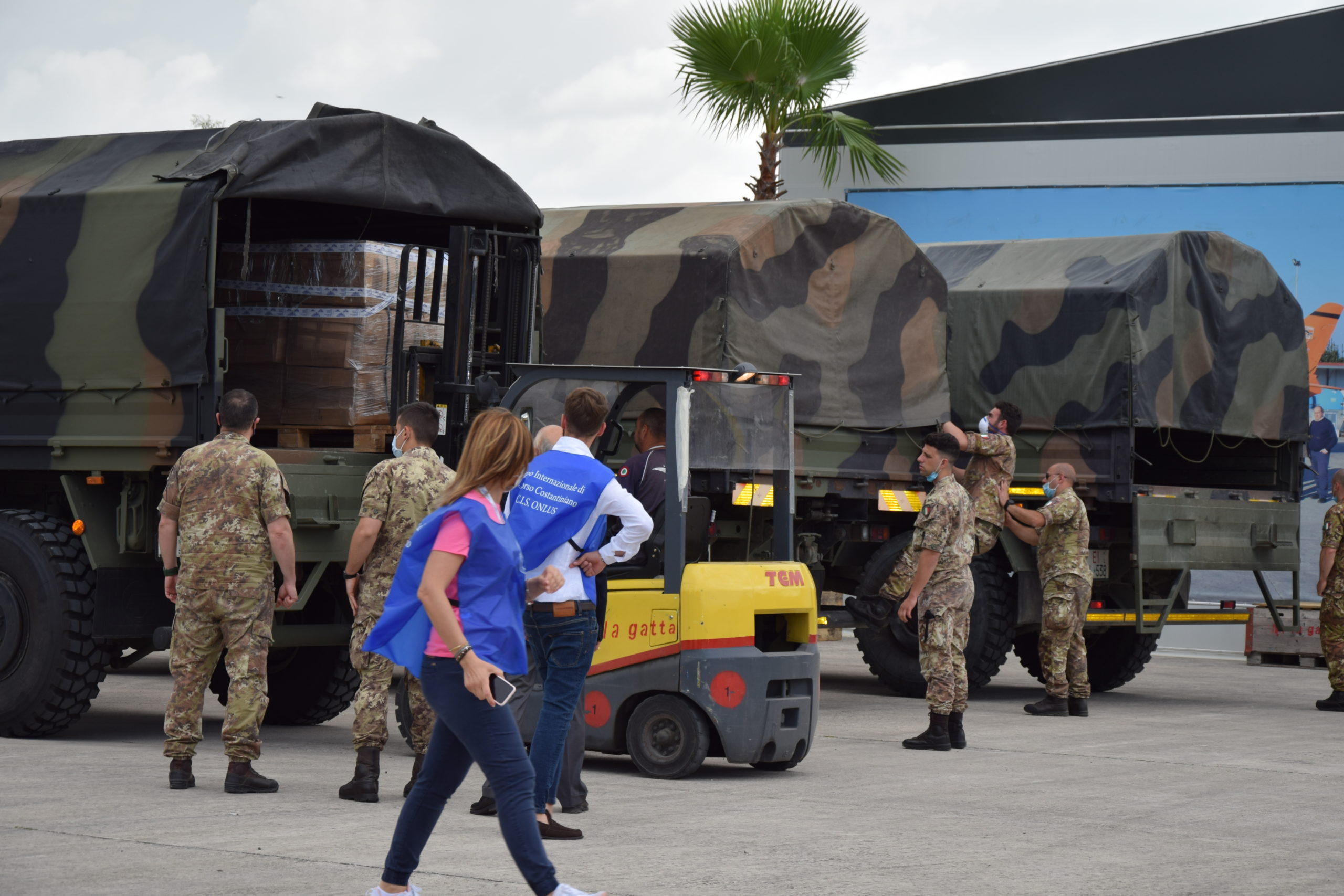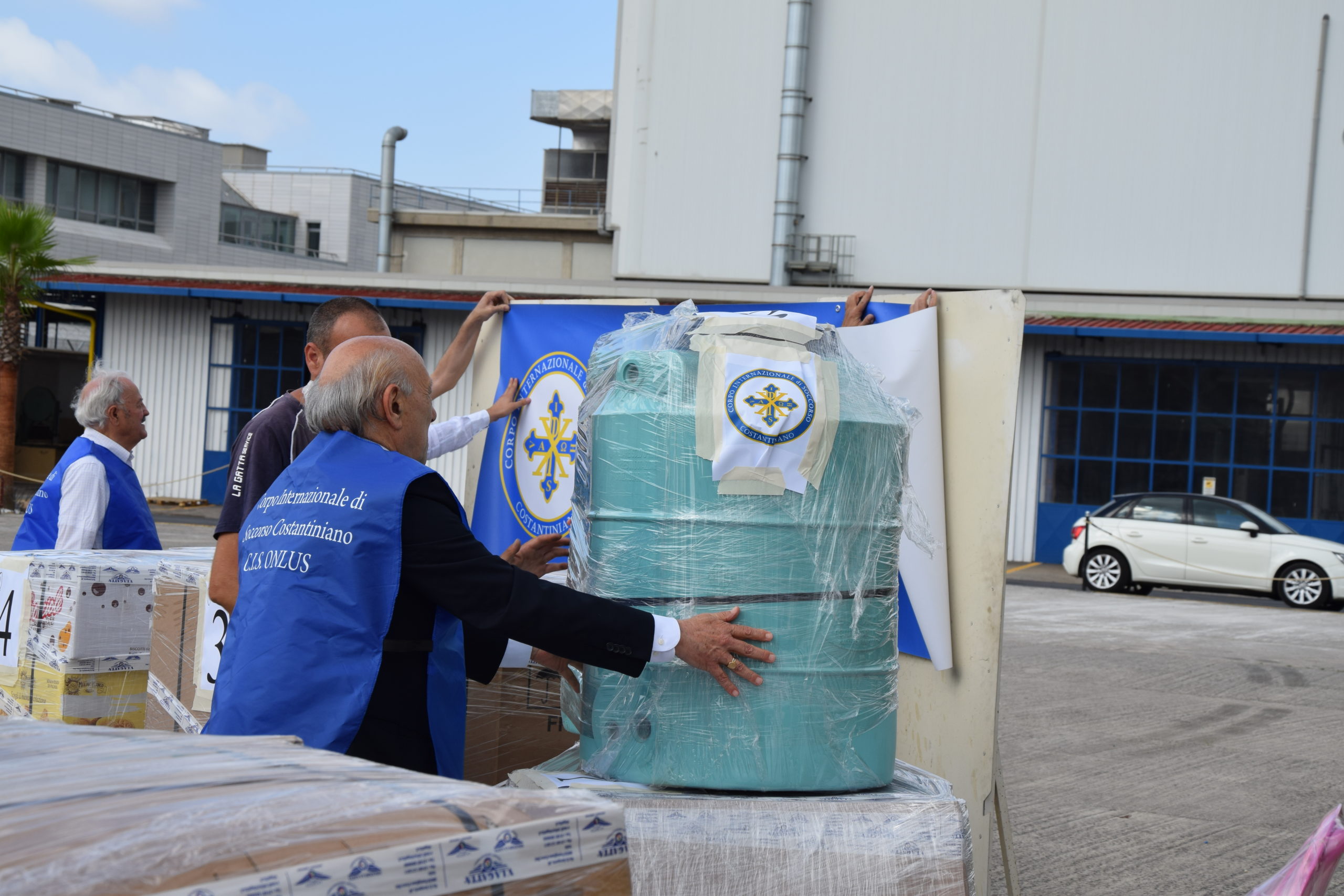 Hanno collaborato attivamente alla raccolta la Delegazione di Avellino guidata da Feliciano Preziuso, quella di Pozzuoli retta da Maria Grazia Siciliano, la Delegazione di Salerno che fa capo a Ettore Bellelli. Un grazie va anche a Gaetano Locci, ma un grande grazie in particolare a Vincenzo La Gatta che ha provveduto anche allo stoccaggio e agli imballaggi di una grande quantità di giocattoli da lui donati e all’assistenza con il suo personale nella fase di carico dei donativi, e ancora ad Antonio Sticco che ha provveduto al trasporto dei materiali. Inoltre, un grazie sentito anche agli associati al Corpo Internazionale di Soccorso O.d.V. Mariano Saviano, Francesco Pio Piccolo, Stanislao Napolano, Onorato Damiano, Emanuela Sica, Vincenzo Virginio e all’avvocato Sandra Latocca che ci ha rifornito di un cospicuo quantitativo di generi di vestiario per uomo, donna e bambino. Sono stati così approntati: n. 10 pallets da 120×120 e n. 3 serbatoi da acqua di cui uno da 5000 lt.