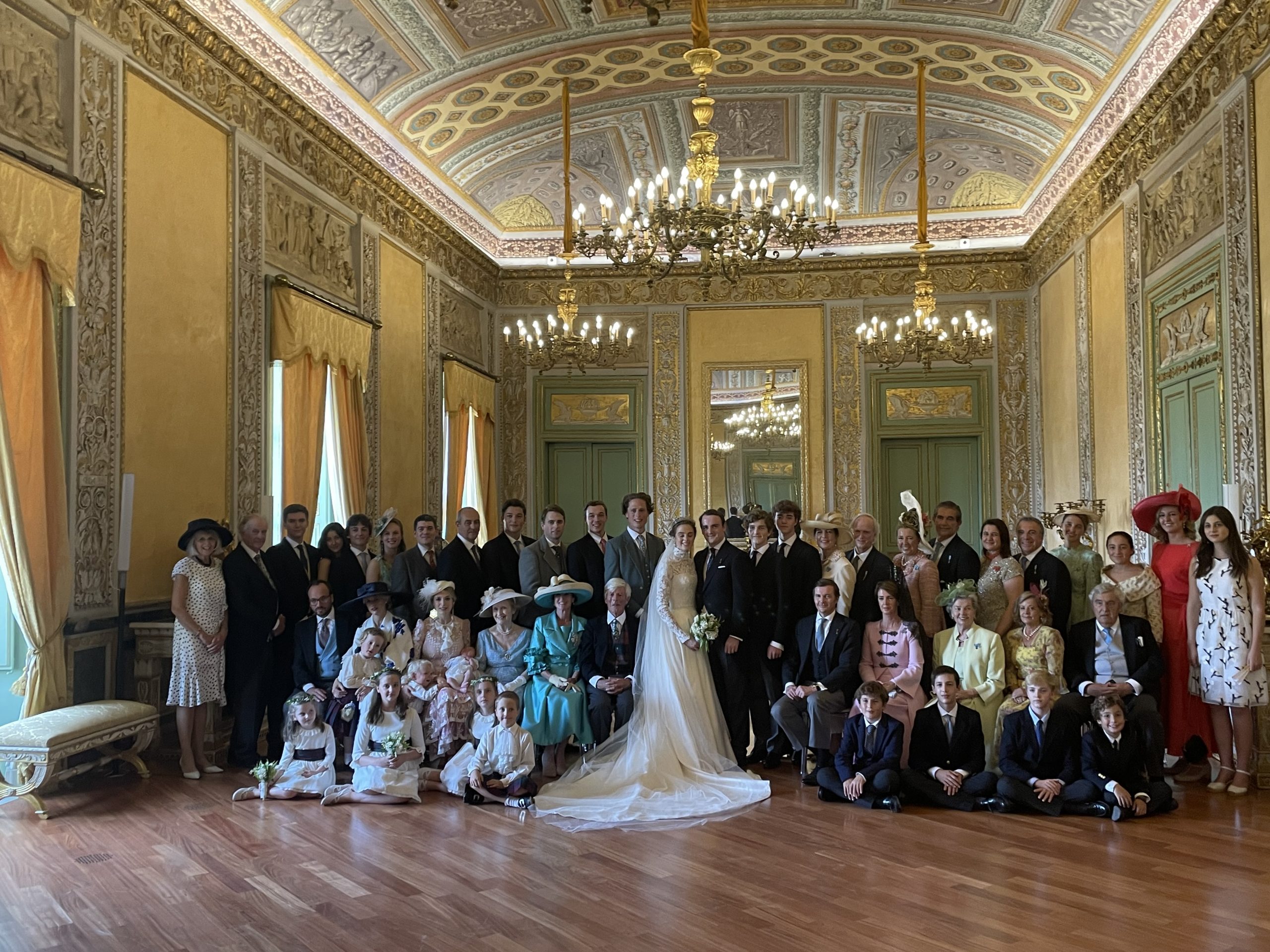 Si scorgono parenti prossimi dello sposo S.A.R. la Principessa Donna Teresa di Borbone delle Due Sicilie Duchessa di Salerno col marito Marchese de Laserna, S.A.R. il Principe Charles-Emmanuel di Borbone-Parma, S.A.R. il Principe Charles-Emmanuel de Orléans Duca d’Angiò, S.A.R. il Duca Chartres, S.A.R. la Principessa Diane d’Orléans Viscontessa de Noailles, S.A.R. la Principessa Chantal d’Orléans-Bragança Baronessa di Sambucy de Sorgue, LL.AA.RR. Kostantin e Maria di Sassonia-Coburgo-Gotha Principi di Vidin, S.A.R. il Principe Dom Alfonso de Bragança Principe di Beira, Conte José Zamoysky de Borbon e S.A.S. la Principessa Maria d’Orleans moglie del Principe Gundakar di Liechtenstein, S.A.R. il Principe Mirko di Bulgaria; in rappresentanza di S.A.R. il Principe Dom Duarte Pio Duca di Bragança Capo della Real Casa del Portogallo era presente la consorte S.A.R. Donna Isabel de Bragança Duchessa de Bragança accompagnata dall’erede S.A.R. l’Infante Dom Alfonso de Bragança Principe di Beira e il secondogenito Infante Dom Dionisio de Bragança Duca di Porto, quindi S.A.R. l’Infante Dom Miguel de Bragança Duque de Viseu fratello del dipendente dei Sovrani Lusitani.