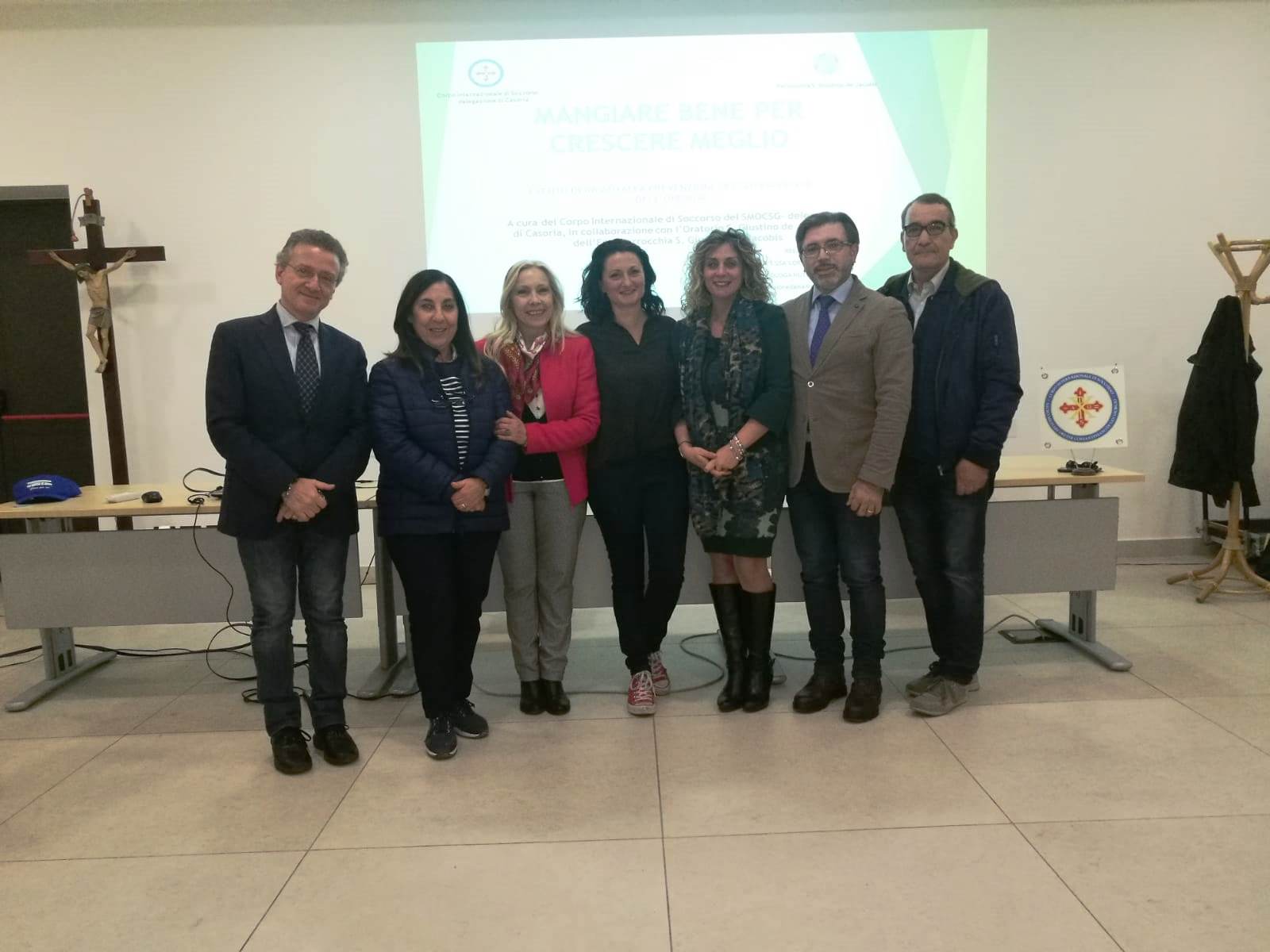La lezione curata dalla Biologa Nutrizionista nonché volontaria Corpo Internazionale di Soccorso SMOCSG dott.ssa Loredana Abbate che potrà contare su di una nutrita partecipazione di volontari del Corpo, tra cui il sig. Antonio Laezza, la sig.ra Susy Tosti, la prof.ssa Maria Maddaloni, la prof.ssa Assunta Tufano, il sig. Antonio De Quattro, coordinati dall’avv. Ermanno Lauri. Le lezioni si articoleranno in due appuntamenti. Quello odierno sarà un’occasione per parlare e riflettere sull’alimentazione dei bambini insieme i genitori, ai quali verranno fornite le nozioni base per una corretta alimentazione da trasferire ai propri figli; il secondo appuntamento che si terrà il 21 novembre prossimo sempre alle ore 17.30, sarà incentrato ad effettuare gratuitamente misurazioni antropometriche per valutare lo stato di salute dei bambini e di seguito monitorarli nella crescita. Con tale iniziativa il Corpo Internazionale di Soccorso e la Parrocchia San Giustino de Jacobis, si impegnano in un’attività socialmente utile per la salvaguardia della salute dei bambini.