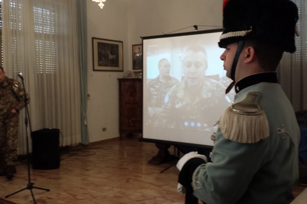 L’incontro è stato particolarmente emozionante ed in particolare allorquando è stato effettuato il collegamento in teleconferenza via skype con il Colonnello Angelo Malizia Comandante del Reggimento che ha comunicato il programma previsto durante la Missione Umanitaria.