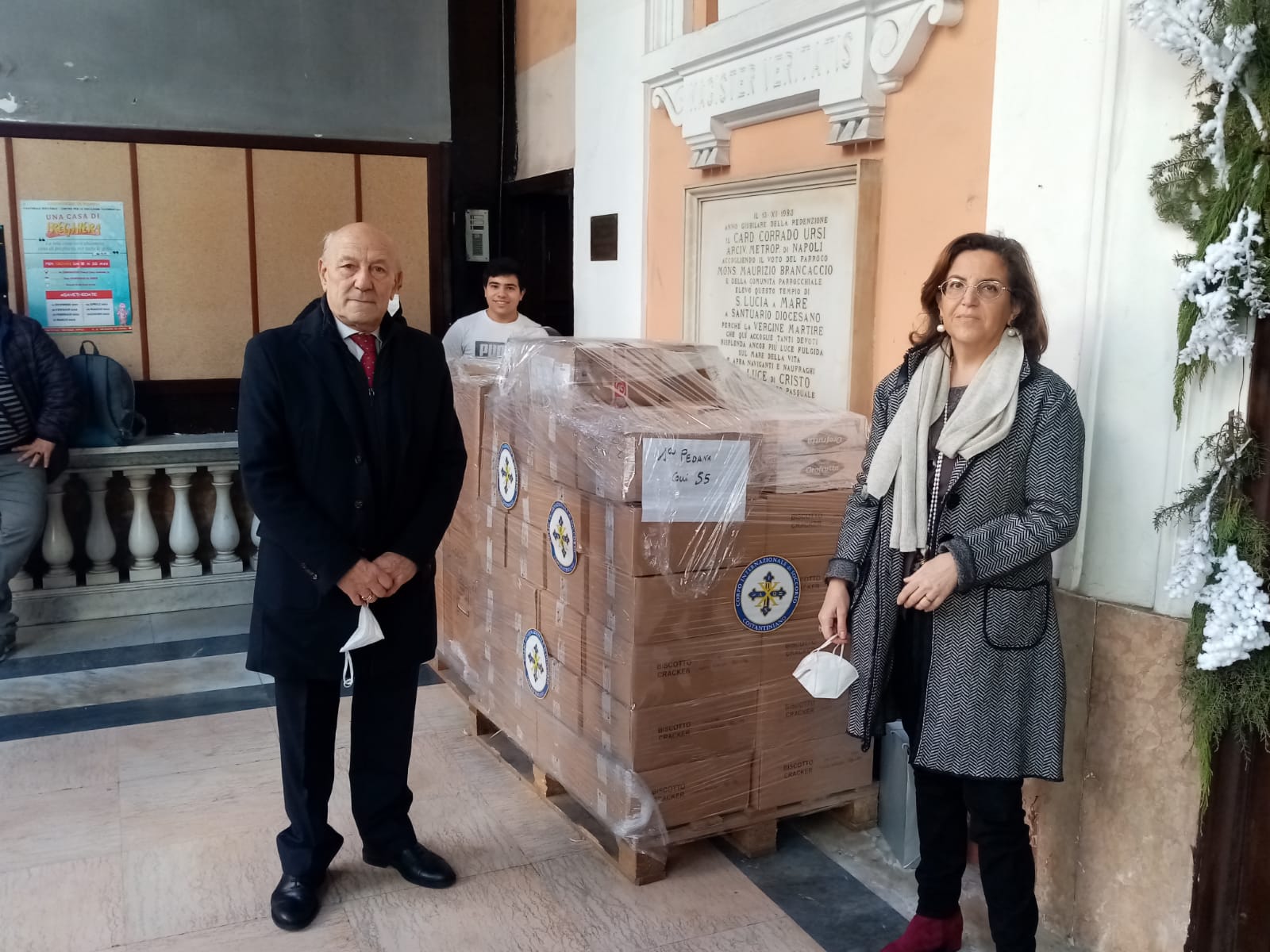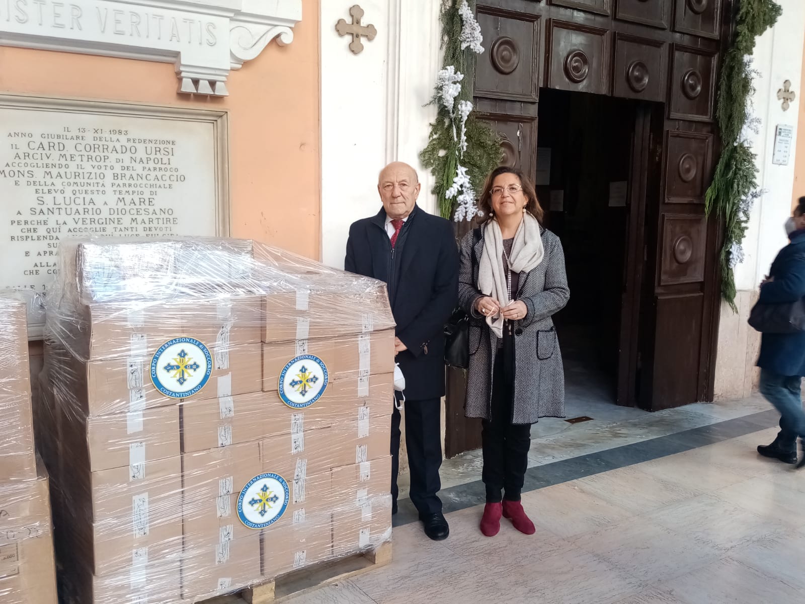 Questa mattina Padre Giuseppe Carmelo, Decano presso il 3° Decanato – Montesanto – Pizzofalcone – Quartieri, Parroco della Basilica di Santa Lucia a Mare, Membro di diritto presso il Consiglio Presbiterale Diocesano di Napoli, ha incontrato il Presidente del Corpo Internazionale di Soccorso O.d.V., Marchese Pierluigi Sanfelice di Bagnoli, il quale accompagnato dai nostri associati, Valeria Pessetti, Alfredo Buoninconti, hanno consegnato al Reverendo Padre una quantità di generi alimentari, per aiutare a sopperire alle necessità della Basilica, viste le sempre crescenti richieste in occasione anche della festività della Befana.