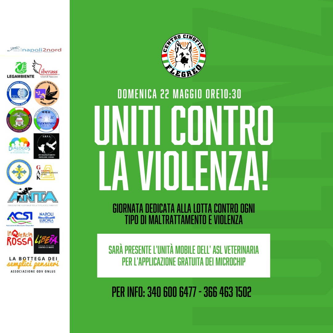Domenica 22 maggio, alle ore 10.30, il Centro Cinofilo Flegreo diretto da Nando Mauro organizza, presso la propria sede in Pozzuoli alla via lago D’Averno 3, lato destro, una giornata dedicata alla lotta contro ogni tipo di violenza: verso i bambini, le donne, gli animali, l’ambiente.